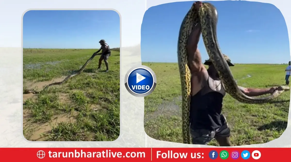 बाबो! एका हाताने पकडला विशाल अॅनाकोंडा, पाहून लोक झाले थक्क; व्हिडिओ व्हायरल