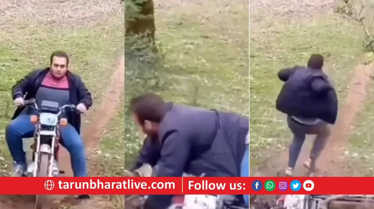 स्टंटचा एक मजेदार व्हिडिओ सध्या मोठ्या प्रमाणात व्हायरल होत आहे. ज्यामध्ये एक व्यक्ती डोंगरावर बाईक चालवण्याचा प्रयत्न करते, पण शेवटी त्याचे सगळे प्लॅनिंग खोळंबते. ...