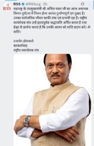 राष्ट्रीय स्वयंसेवक संघाने अजित पवारांना वाहिली श्रद्धांजली….