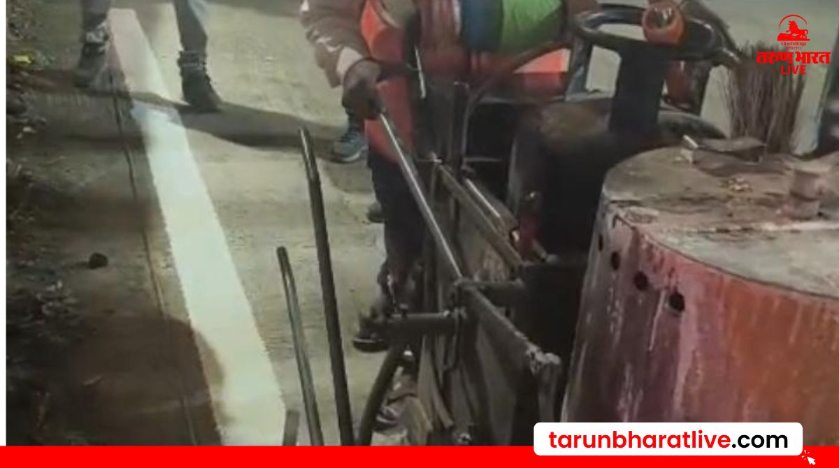 जळगाव शहराच्या सुशोभीकरणाला वेग; मुख्य रस्त्यांवर पांढऱ्या-पिवळ्या पट्ट्यांचे काम सुरू