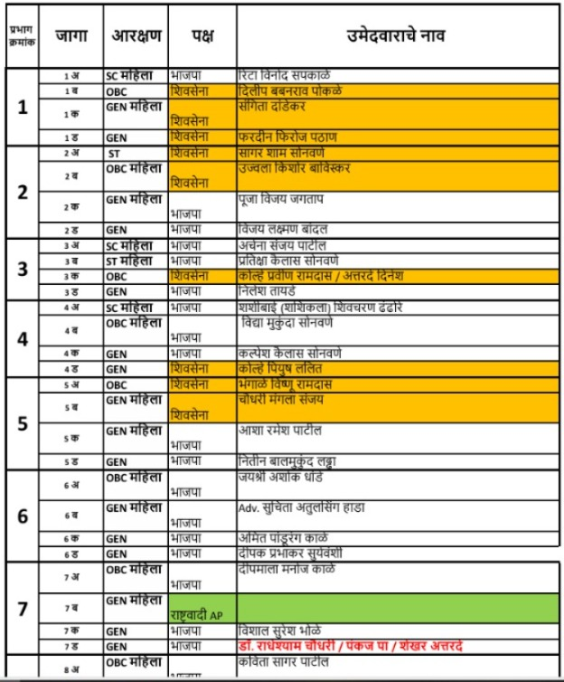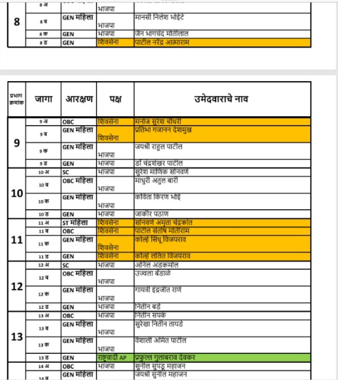 जळगाव : महापालिका 2026 च्या निवडणुकीसाठी महायुतीच्या उमेदवारांची यादी जाहीर करण्यात आली आहे. कोणत्या प्रभागात कोणाला संधी देण्यात आली आहे, हे जाणून घेऊयात.